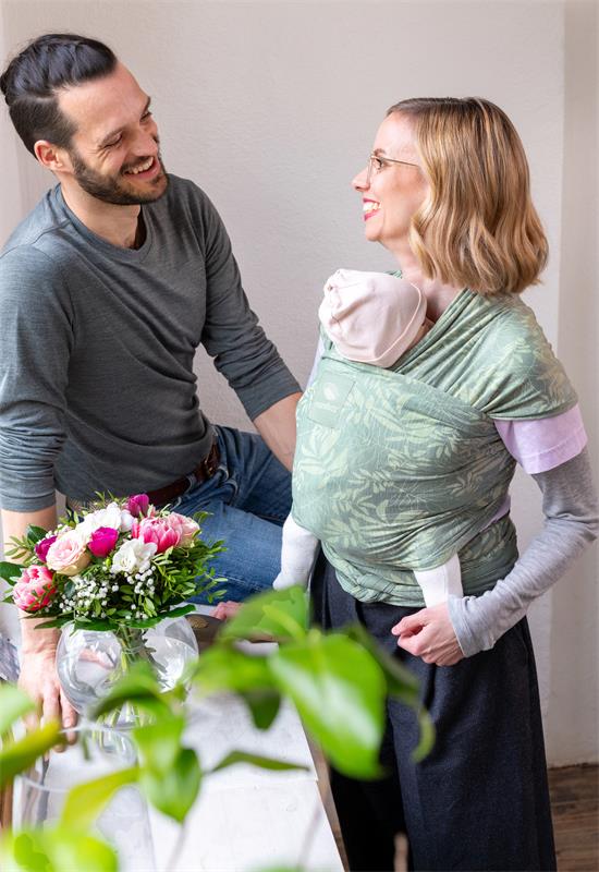 With a standard size of 5.50 m, the Manduca Sling fits almost every wearer. It has narrow tapered ends that are particularly easy to knot and do not add bulk. The fabric of the sling hugs your baby and your body like a tight-fitting T-shirt.